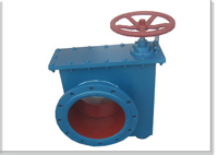 在殼體外側(cè)設(shè)有批示閘板開度的指針及標(biāo)牌,可直觀地控制閘板開度的百分比。
